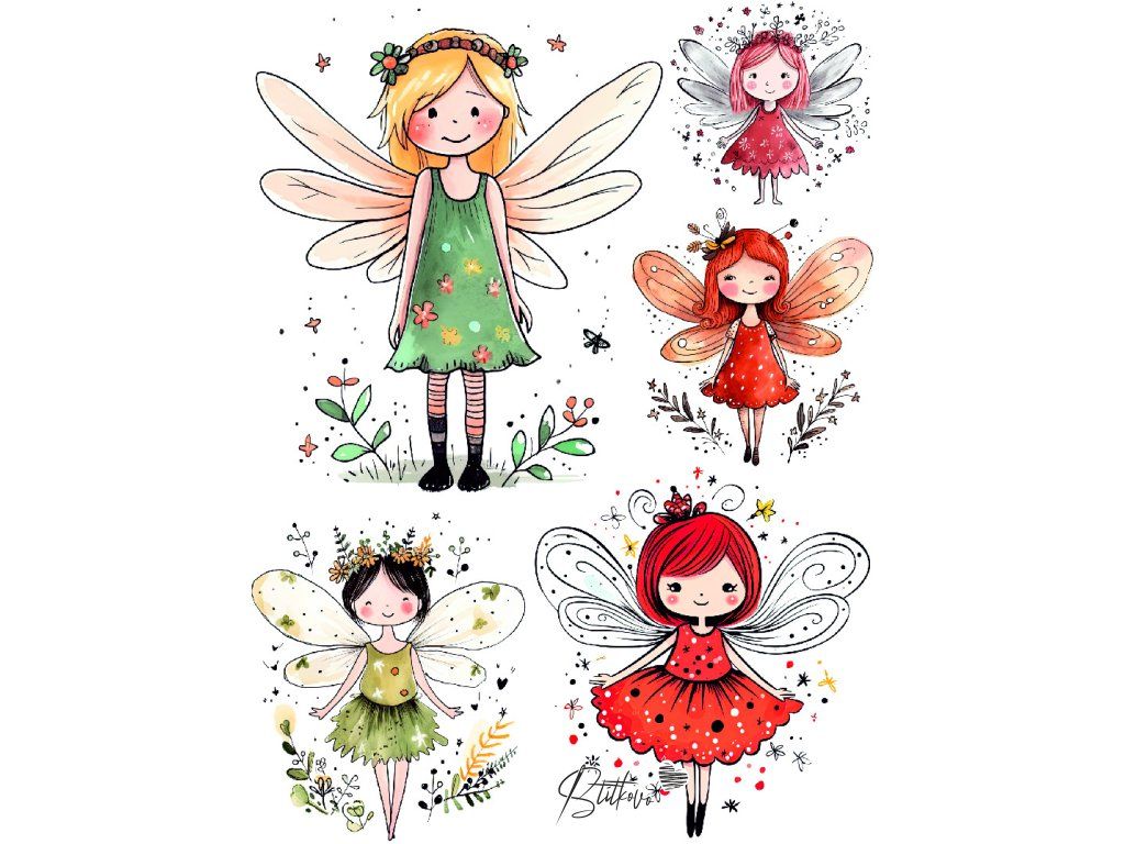 INFO: v cene archu A5/A4 je 5 rôznych obrázkov víl v odlišných veľkostiach (podľa znázornenej grafiky)