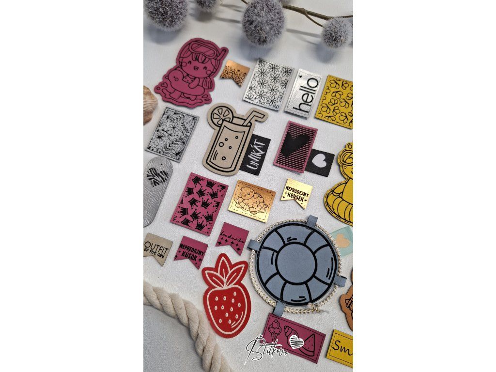 Materiál: Laser koženka je špeciálny druh koženky určenej na gravírovanie. Ľahko sa prešíva, takže ju zvládnete prišiť aj na klasickom bežnom stroji. / Štítok z brúsenej koženky je mikrovlákno(textilná látka vytvorená z umelých vlákien). Je veľmi príjemná na dotyk, ktorý pripomína pravú prírodnú kožu. Je odolná a veľmi príjemná na dotyk. Spĺňa tie najprísnejšie kritéria výroby, vďaka ktorým je zdravotné nezávadná a šetrná k životnému prostrediu.
