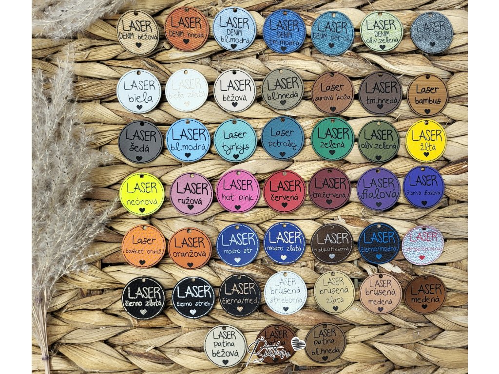 Chcete, aby Vami šité kúsky boli neprehliadnuteľné? Stavte na koženkové štítky od nás! Na výber máte širokú paletu farebnosti a materiálov(laser koženka, semiš a brúsená...