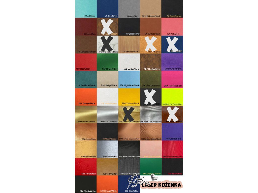 Materiál:  Laser koženka je špeciálny druh koženky určenej na gravírovanie, ktoá má krásny kontrastný gravír/výpal.S laserovateľnou koženkou sa skvelo pracuje, hoci je pevnejšia, je veľmi dobre ohybná, výborne sa šije a gravírované grafiky sú na nej krásne vidieť.Ľahko sa prešíva, takže ju zvládnete prišiť aj na klasickom bežnom stroji.