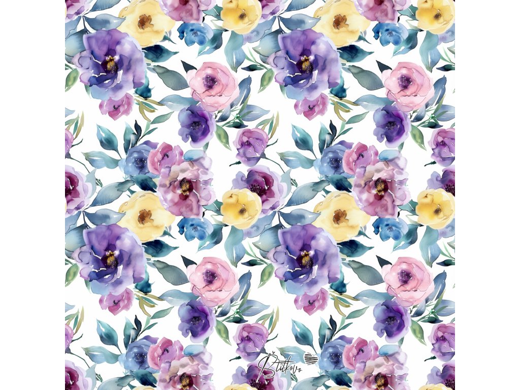 Plnofarebná koženková potlač - Akvarel kvety