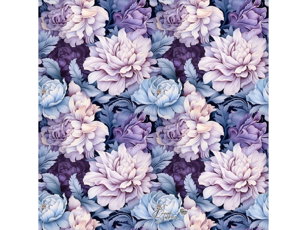 Plnofarebná koženková potlač - Modro fialové kvety